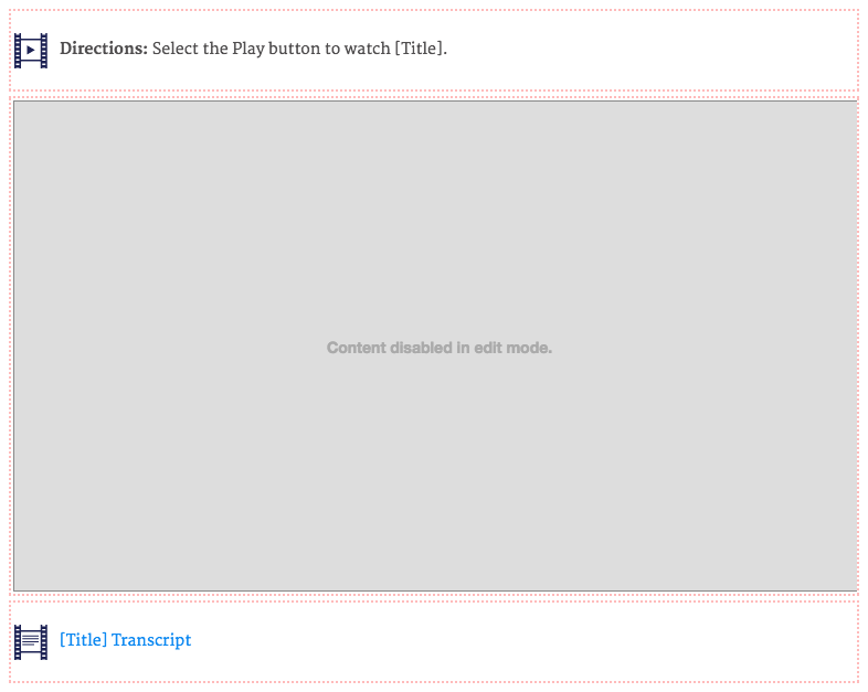 In edit mode, boilerplate template blocks that have not been customized after being added to the page will appear with a lighter red-dotted-line border.