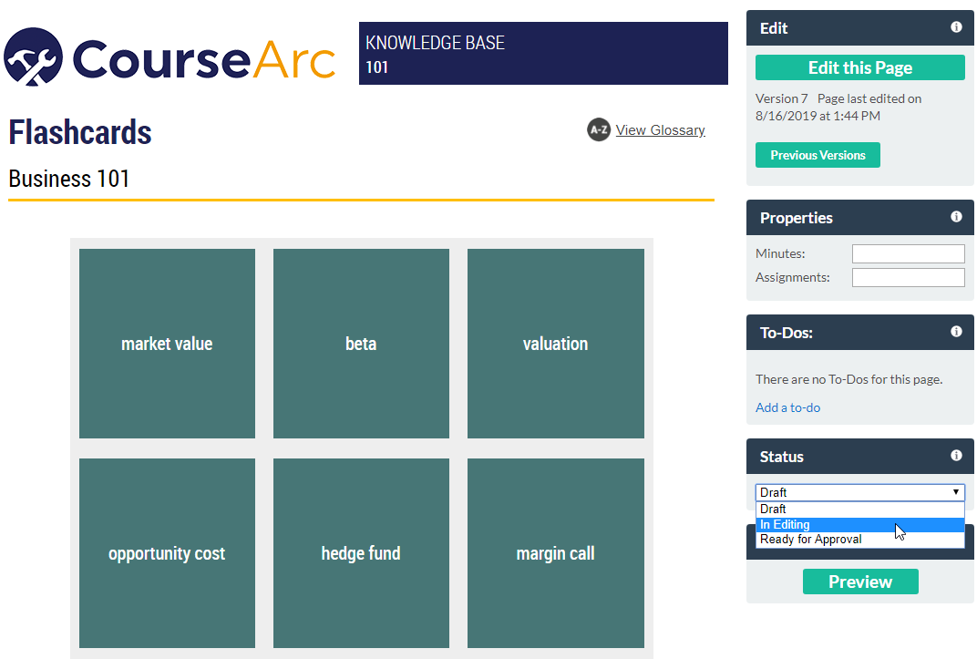 CourseArc has built-in workflow functionality to help manage the content development process. Before you begin, you should review the different user roles that can be assigned in CourseArc.