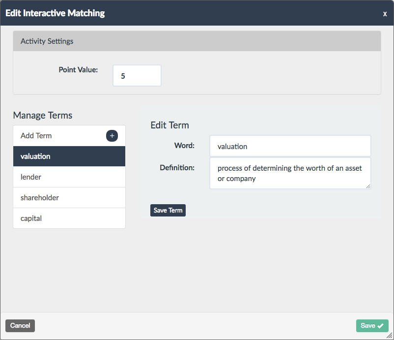 The cumulative grade setting enables a participation point value for each page and the option to assign points to individual interactive activity blocks that have a scoring option.