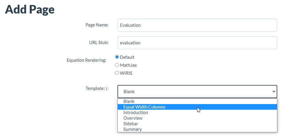 If another template is not selected manually, the Blank template is the default when a new page is created. The Blank page template has a single column layout.