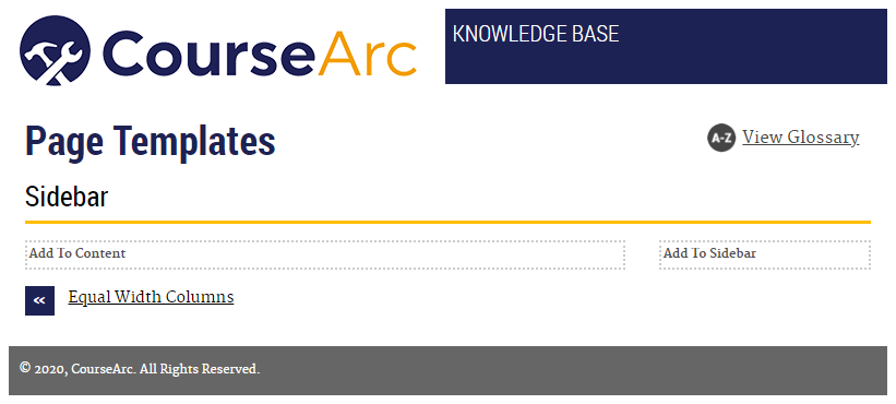 The Equal Width Columns page template allows content to be created side-by-side in two equal-sized columns. To learn more about using the Equal Width Columns template, refer to How do I use the Equal Width Columns page template?.