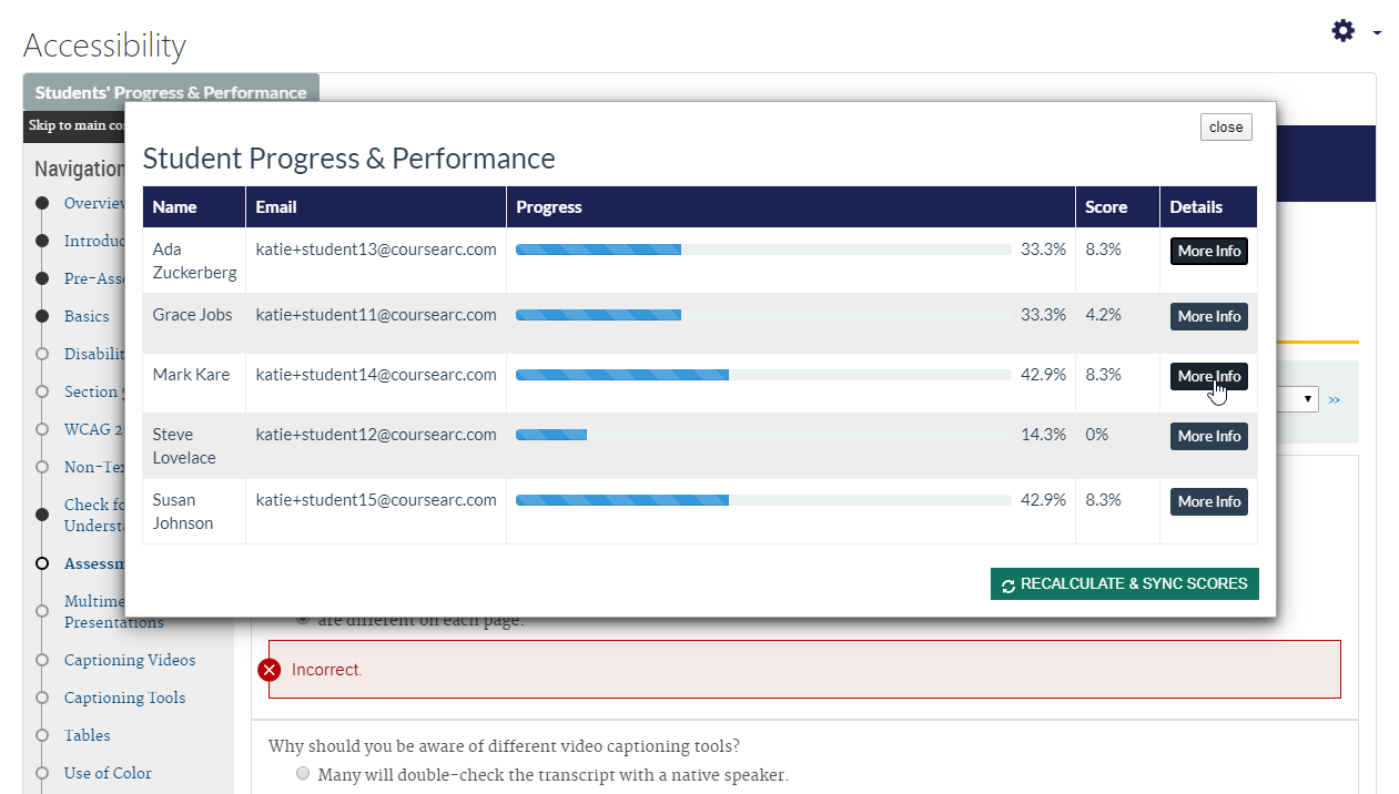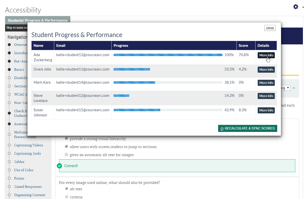 For guidance on correcting grade discrepancies, refer to How do I sync learner scores when CourseArc scores are different than what is in my gradebook?.